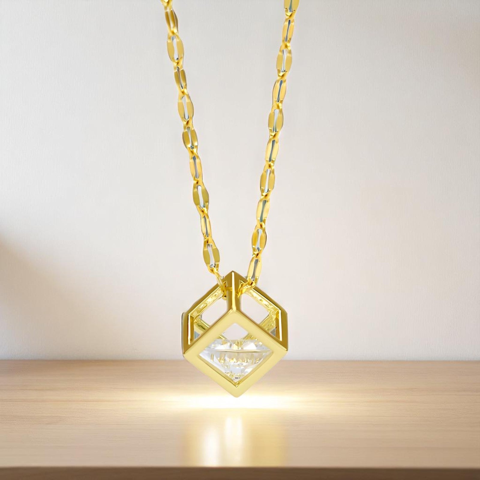 Cube Cage Cubic Zirconia Necklace 18K Gold Plated Stainless Steel