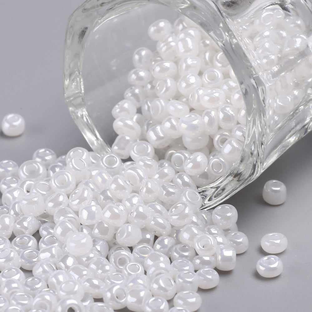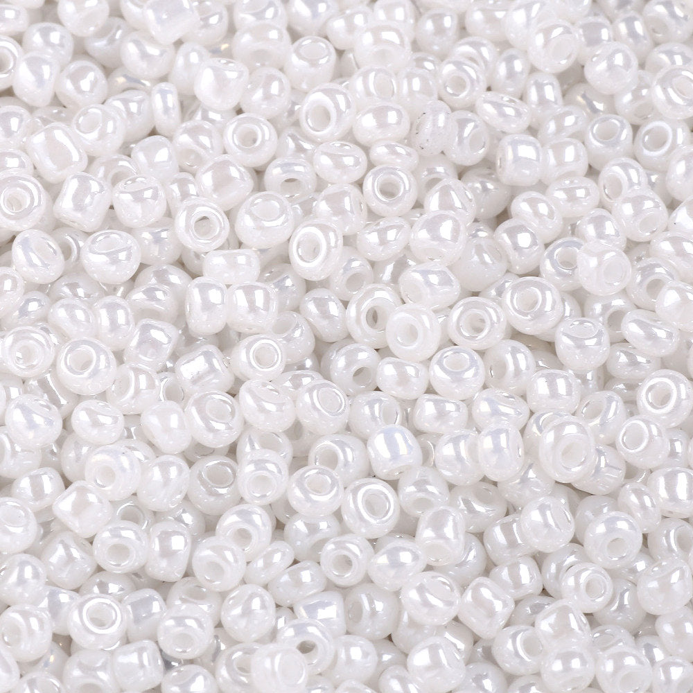 White Glass Seed Beads Ceylon - Pearl Lustre finish.